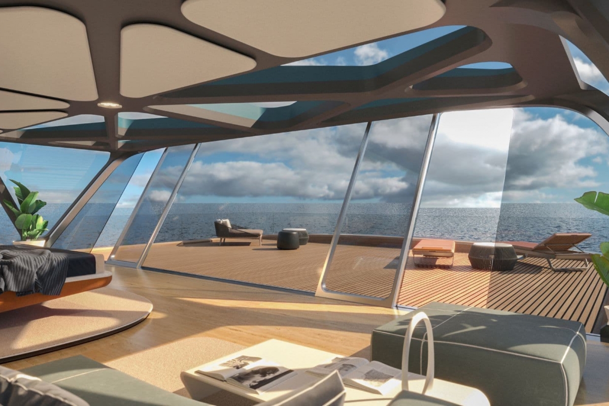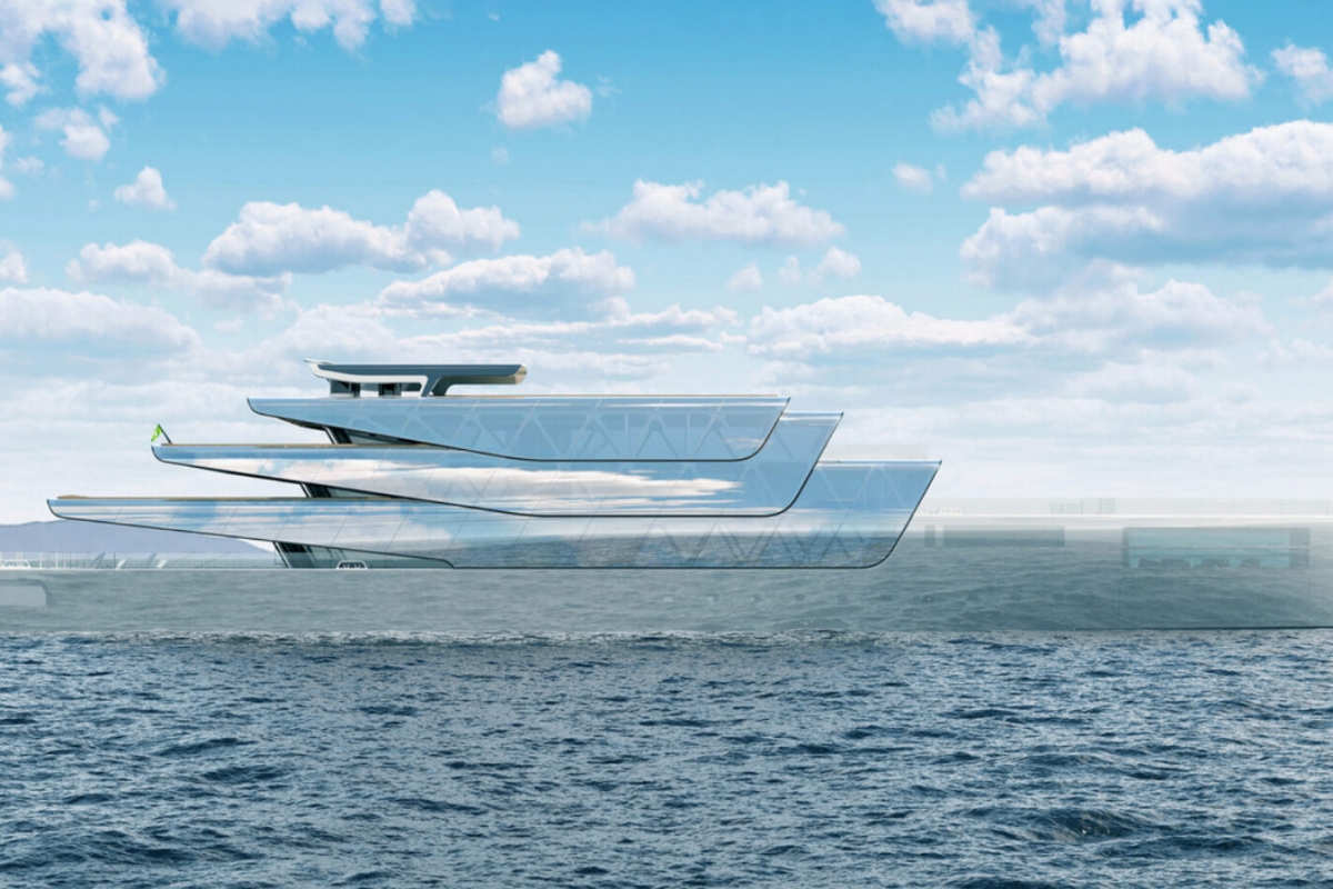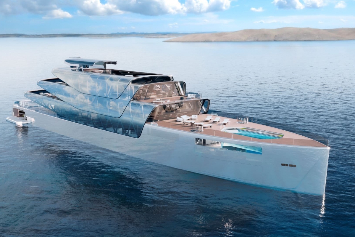 O projeto é da autoria do designer Jozeph Forakis, que idealizou esta obra de engenharia com mais de 80 metros de comprimento e uma superestrutura construída em materiais ultraleves e com casco e cobertura com acabamento prateado metálico, quase espelhado. Cada um dos três níveis da cobertura retrátil está revestido por painéis solares.
