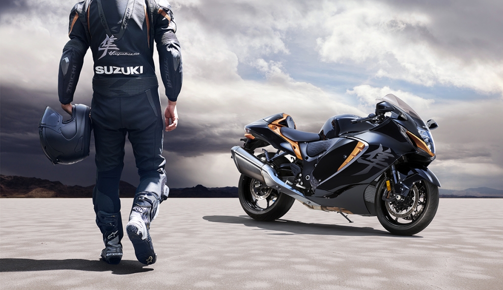 A nova Hayabusa é a terceira geração de um modelo que sofreu uma mudança radical pela primeira vez em 13 anos. Sob o conceito «Ultimate Sport» herdado da primeira geração, o seu design exclusivo evoluiu ainda mais, proporcionando um desempenho aerodinâmico excepcional e um manuseamento melhorado. Este conjunto de equipamento de origem é parte de uma parceria de longo prazo na qual a Bridgestone tem fornecido pneus premium para a Suzuki Motor Corporation para uma ampla gama de motos.