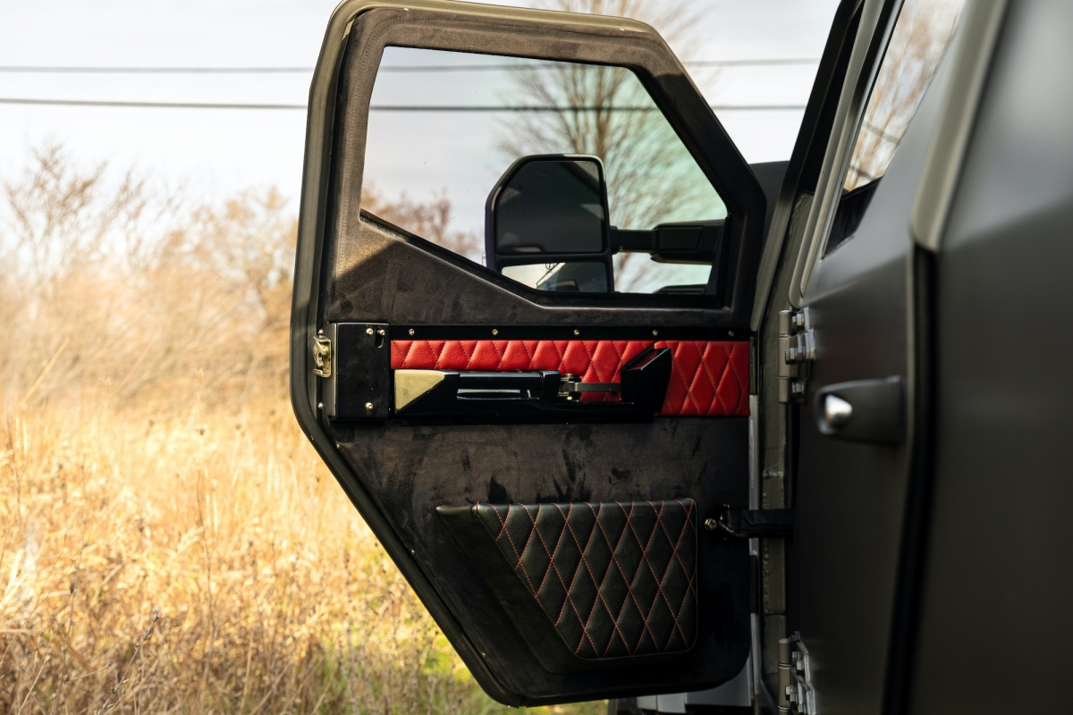 Entre as alterações, ainda o escape instalado no tejadilho para atravessar rios e curso de água sem contratempos, um tanque secundário de combustível com bomba de fluxo de transferência automática e amortecedores reforçados da FOX, sem esquecer o potente motor que parece oferecer garantias no caso de ser necessário fugir para qualquer lado ou de todo o tipo de ameaças: um V8 Diesel sobrealimentado de 6,7 litros, modificado para debitar até 335 CV de potência e 750 Nm de binário máximo.