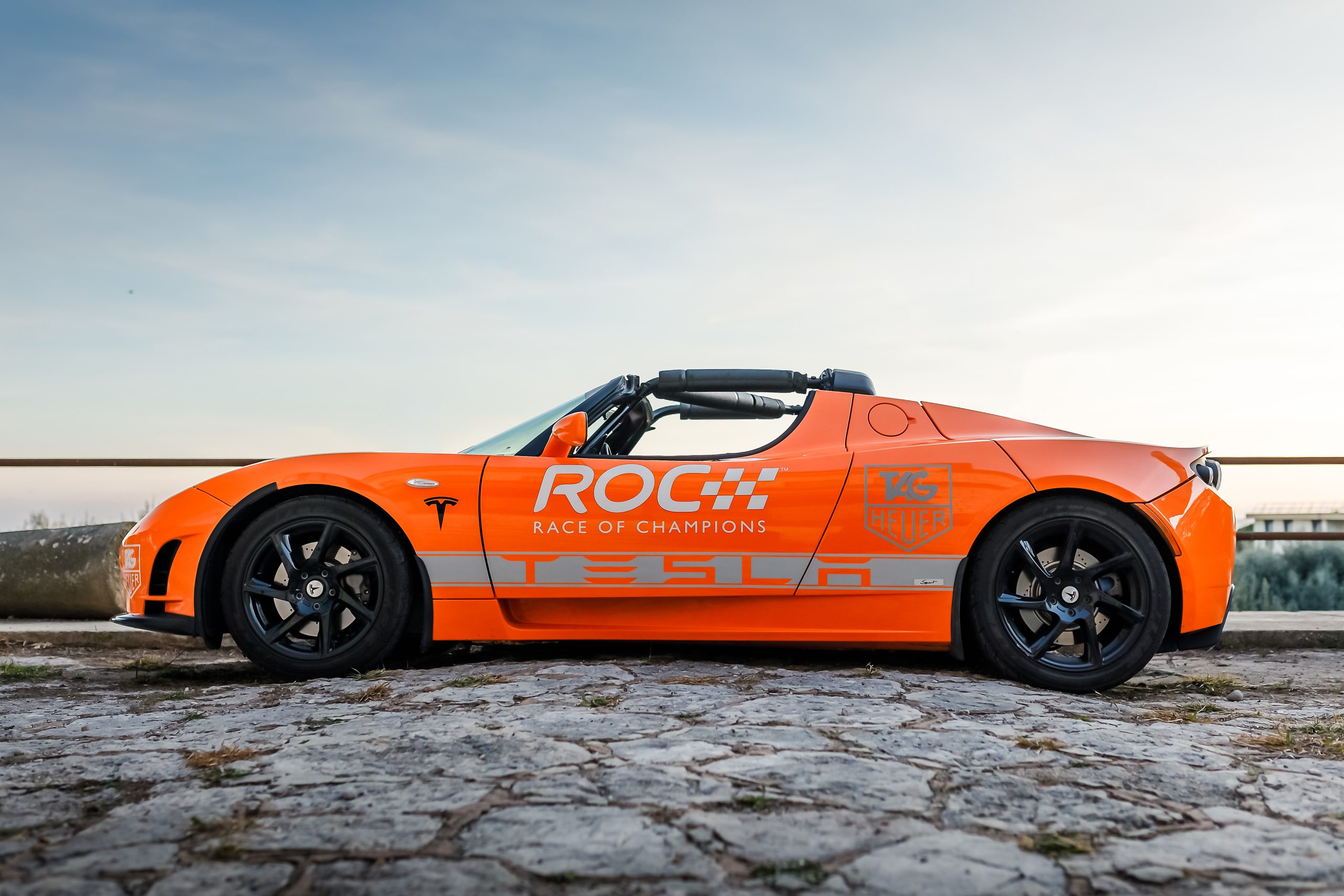 O mais surpreendente, um Tesla Roadster… de competição. Trata-se do modelo que Michael Schumacher pilotou em 2010 na Corrida dos Campeões (ROC-Race of Champions), ano em que conquistou a taça das nações para a Alemanha.