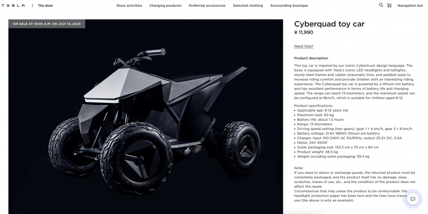 Trata-se de uma réplica do quad elétrico para crianças a partir dos 8 anos, movido por uma pequena bateria de iões de lítio a permitir uma autonomia de até 13 quilómetros, demorando menos de duas horas para recarregar a partir de qualquer tomada doméstica e capaz de atingir 8 km/h, a custar cerca de 1500 euros naquele país.