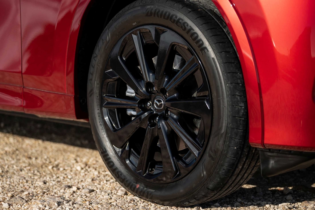 Em andamento temos à disposição cinco modos de condução: EV; Normal; Sport; Offroad; e Towing. Este último é o que deve ser escolhido quando se pretende rebocar uma caravana ou atrelado. Apesar das duas toneladas de peso, em modo puramente elétrico a resposta ao acelerador é imediata, mas que se quer ponderada se pretendemos alcançar os 63 km de autonomia anunciados pela marca. O melhor que conseguimos neste modo foram 46 km. Em modo híbrido obtivemos uma média de 5,4 litros aos 100 km, longe dos 1,5 litros/100 km, anunciados pela marca. A Mazda entende que a melhor forma de utilizar este híbrido plug-in é carregando a sua bateria em casa, ou no trabalho. Por isso não suporta carregamentos rápidos em postos CC. É possível carrega-la em andamento (há um botão específico para isso), ou, ligado a uma wallbox aceita uma potência máxima de 7,2 kW, demorando uma carga 2 horas e 20 minutos a ficar completa.