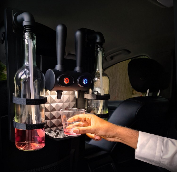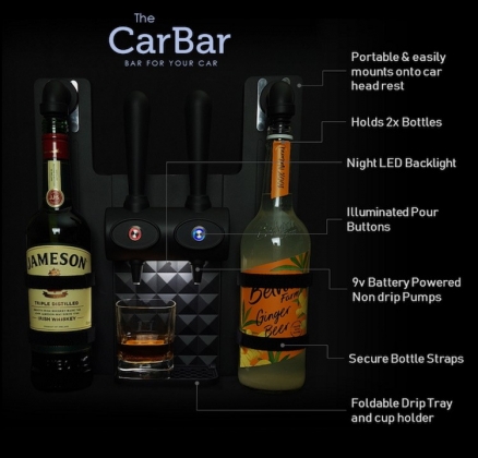 Problemas: Não só a questão legal, que depende, obviamente, de cada país, mas também um rol de dúvidas em matéria de segurança e funcionalidade, mais ainda se tivermos em consideração a explicação no site oficial (https://www.thecarbarstore.com/), que diz que o dispositivo foi criado para evitar o derrame de bebidas no interior dos veículos.O acessório para instalar no encosto do banco dianteiro tem pontos de fixação simples compatíveis com o apoio de cabeça, pesa pouco mais de 1,4 kg e mede 32 cm em largura e 36 cm em altura, roubando só 11 cm no espaço para o banco da frente. Custará cerca de 180 euros (sem bebidas), mas está já preparado para ser carregado com duas garrafas, cada uma com a sua torneira dedicada e o pousa-copos ao centro.