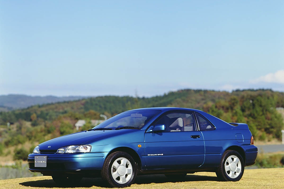 No Japão, haviam dois níveis de equipamento no Cynos, o Alpha e o Beta. A primeira estava equipada com o mesmo motor dos mercados de exportação, mas com 105cv, enquanto a última estava equipada com o motor 5E-FHE, que produzia 115cv, com um sistema que variava o comprimento do colector de admissão. Além disso, a Beta tinha ainda travões de disco nas quatro rodas e suspensão de controlo electrónico TEMS.
