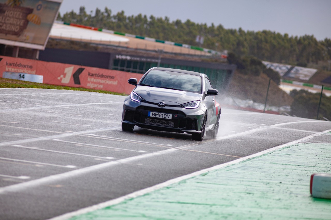 Num breve contacto com o novo Yaris GR, no Kartodromo Internacional do Algarve, a pista meio alagada não permitiu grandes aventuras, mas chegou para confirmar que o interior mudou para melhor. O banco do condutor está 25mm mais baixo, há um novo ecrã de 12,3’’ atrás do volante, com informação bem organizada e de fácil leitura e, de uma forma geral, todos os comandos estão agora mais bem posicionados e mais acessíveis.