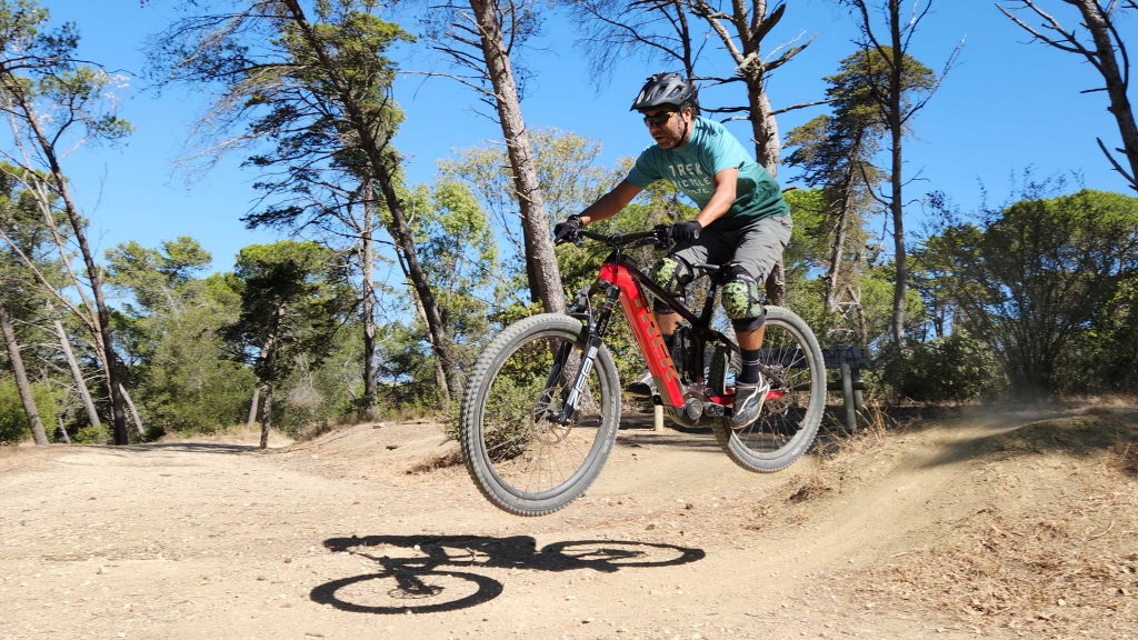 Locais como o Parque do Monsanto, ou as pistas do Jamor parece que foram feitos para esta bicicleta, nos trilhos a Rail 9.9 XX1 AXS demonstrou uma compostura impressionante nas descidas íngremes, com uma ação super suave, tanto do amortecedor RockShox Super Deluxe Ultimate RT3, como da forquilha RockShox ZEB, que passavam por cima de pedras e raízes como se não existissem. O ângulo de direção é mais aberto do que na minha antiga Trek Session de downhill. E o curso do amortecedor e forquilha é igual ao da Trek Remedy que também tive há uns anos. A falta de 50/40 mm de curso em relação à Session, é em parte compensado pelas rodas de 29 polegadas.
