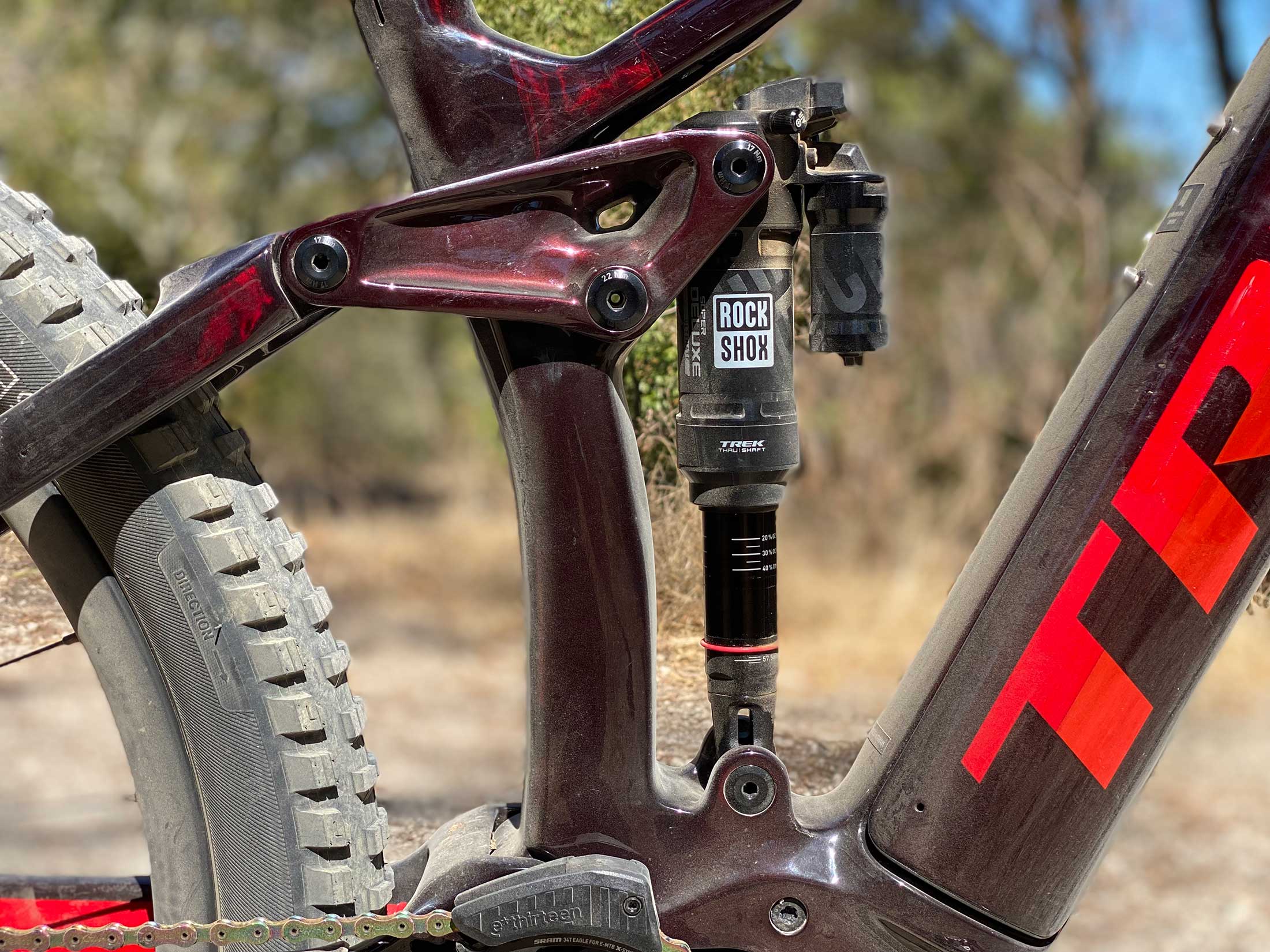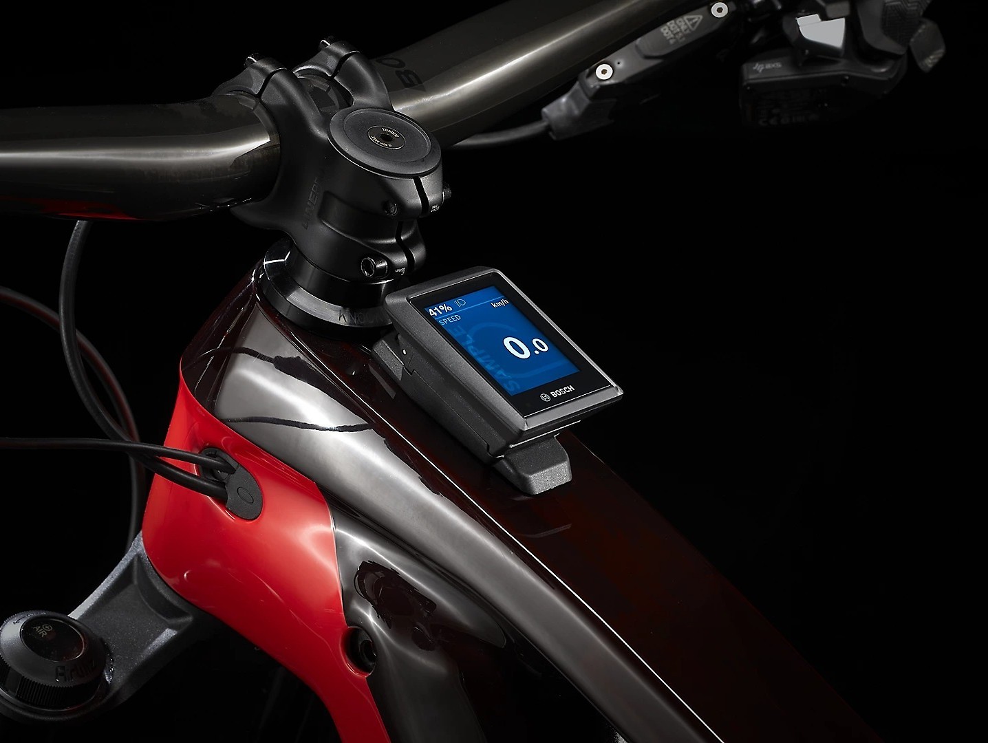 Guiador: Bontrager Line Pro, Carbono OCLV, largura de 780 mm Punhos: Bontrager XR Trail Elite, fixação em alumínio Avanço: Bontrager Line Pro, compatível com Blendr, comprimento de 45 mm Caixa de direção: Knock Block Integrado, rolamento selado tipo cartucho Travões: SRAM Code R, travão de disco hidráulico, 180/200 mm Bateria : Bosch PowerTube 625 Controlador: Bosch Kiox com função anti-roubo Motor: Bosch Performance CX, corpo em magnésio, 250 watts, 85 Nm Peso: Tamanho M – 22.47 kg Limite de peso: bicicleta, ciclista e carga 136 quilos Preço: 12 499 euros