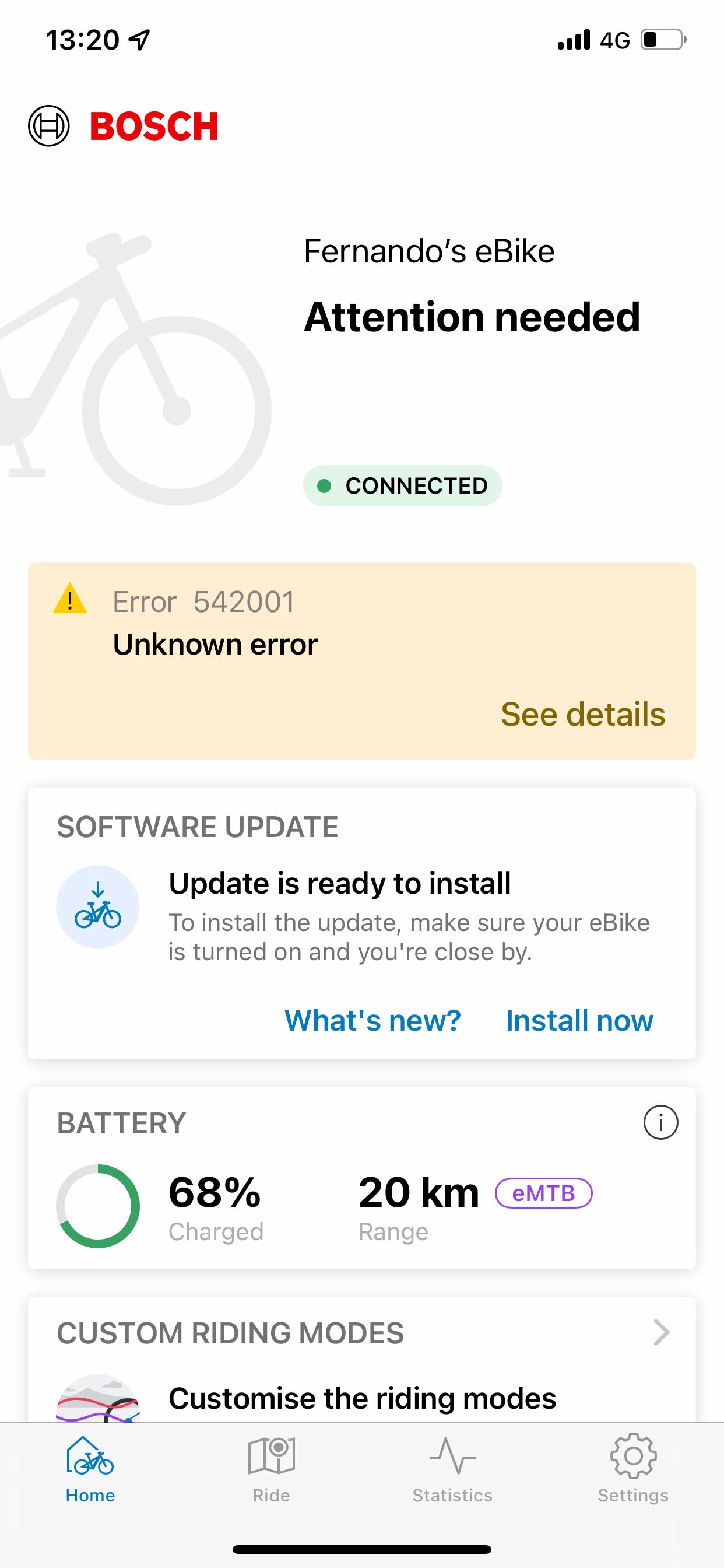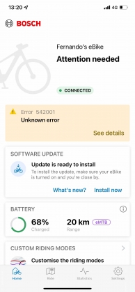 Durante o teste obtive resultados inconsistentes em relação ao estado das luzes que monitorizam a pressão dos diversos componentes, alternando entre vermelho e verde aleatoriamente. Verifiquei as pressões, e como estavam corretas, não me preocupei mais com o assunto, até porque implicava reemparelhar com o smartphone, e eu queria mesmo era andar.