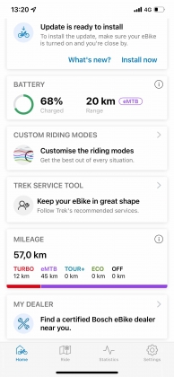 Tudo isto é controlado pelo mais recente computador com ecrã integrado Kiox 300, e o respetivo comando remoto para o guiador. A possibilidade de emparelhar com o smartphone através aplicação eBike Flow da Bosch eleva o sistema para aquilo que a Trek chama de “Smart System”, onde é possível personalizar a assistência, registar as informações das voltas e a performance, ou até receber lembretes para as manutenções.