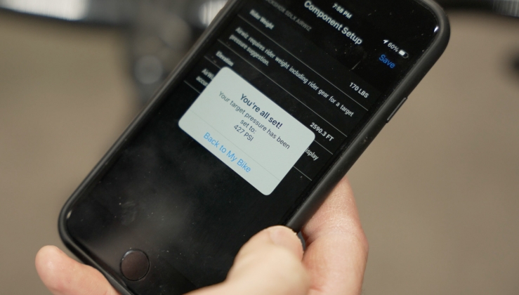 Dentro da app SRAM AXS, é possível então introduzir dados como o nosso peso e o SAG pretendido, para obter a pressão que devemos colocar tanto no amortecedor Super Deluxe Ultimate RT3, como na forquilha ZEB. A interação fica-se por aqui, uma vez que os sensores não fornecem qualquer tipo de telemetria, nem recolhem dados para posterior análise. Apenas avisam mediante uma luz que estando verde indica que a pressão está de acordo com o que definimos, ou vermelha, quando difere do valor estabelecido. O mesmo acontece com as rodas Bontrager em carbono com os sensores de pressão Quarq TyreWiz. Na prática, antes de sair de casa é só verificar a carga das baterias, confirmar que todas as luzes estão verdes, e estamos prontos para andar. Com isto temos mais uma preocupação, que se pode transformar num problema quando já estivermos a meio da volta se não o fizermos.