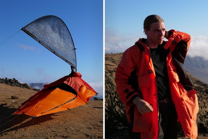 Trata-se do Fog-X, um projeto criado por Pavel Hedström, e que é um casaco que se converte em abrigo individual. Incorpora uma seção que pode ser levantada para recolher a neblina que posteriormente será transformada em água potável.