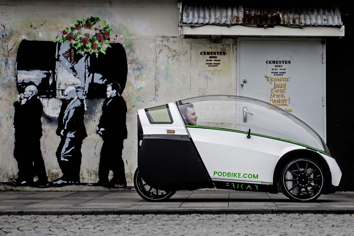 Uma mistura de carro e bicicleta, movido a pedais ou energia elétrica, a Frikar, criada pelos noruegueses Podbike, pretende assumir-se como a evolução natural daqueles veículos de duas rodas não poluente para circular na cidade, sem nenhuma das suas limitações, em matéria de segurança e conforto. O seu design ovalizado responde à necessidade de proteger o ciclista, juntamente com uma aerodinâmica mais do que estudada para reduzir a resistência, que segundo a empresa “é inferior à de uma bicicleta convencional”.