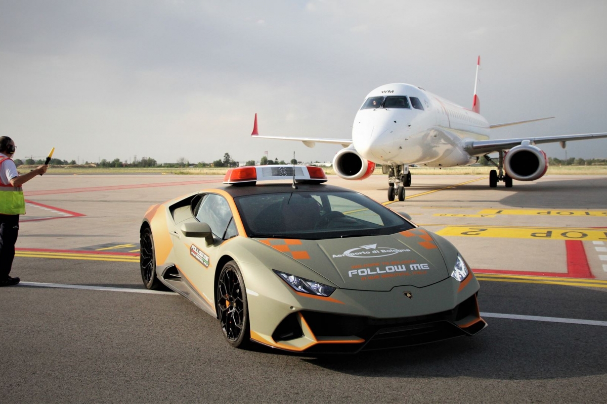 Fãs de superdesportivos têm agora mais um motivo para viajar até Itália. Idealmente, com voo a aterrar no aeroporto Guglielmo Marconi, em Bolonha, onde um especialíssimo Lamborghini Huracán EVO vai juntar-se à frota de viaturas “follow me”, encarregue de guiar os aviões ao seu local de paragem junto ao terminal de passageiros.