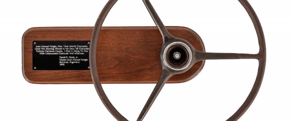 Presente neste artigo está o volante que Juan Manuel Fangio utilizou no seu Chevrolet Turismo Carretera de 1939, um automóvel construído especificamente para competir na Argentina. Após ser retirado do automóvel, pelas mais diversas razões que se desconhece, este volante pertenceu a David E. Davis, jornalista da revista Car and Driver Magazine, que posteriormente o ofereceu a Brock Yates, jornalista, autor e co-fundador da Cannonball Run.