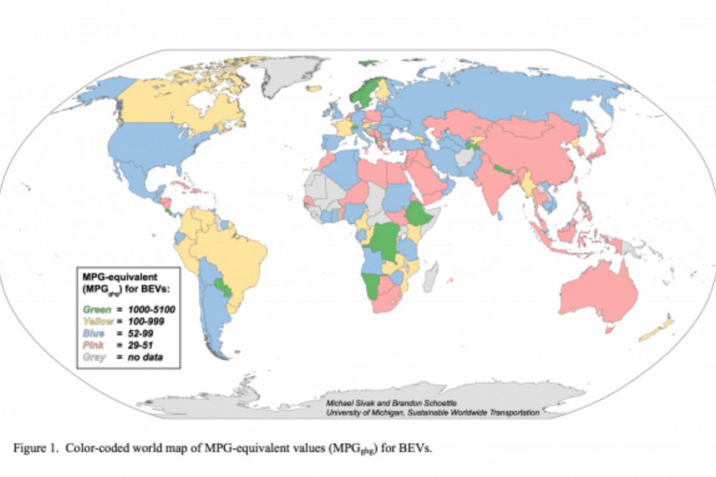 Apesar de não emitirem dióxido de carbono diretamente para a atmosfera, considerar que os veículos elétricos são totalmente neutros nas emissões de CO2 é um erro, pois é sempre preciso ter em conta a forma como é obtida a eletricidade que os alimenta. Com exceção da Albânia, onde a rede elétrica é abastecida a 100% de forma limpa, por exemplo com estações hidroelétricas, acaba sempre por haver algum impacto ambiental destas viaturas. Esta é a conclusão de um estudo agora publicado pela Universidade do Michigan, e que apresentou um mapa sobre o impacto destes automóveis em 143 países. O estudo teve apenas em conta a forma como é obtida a energia para os automóveis, e não avaliou de forma alguma a produção de cada tipo de viatura.