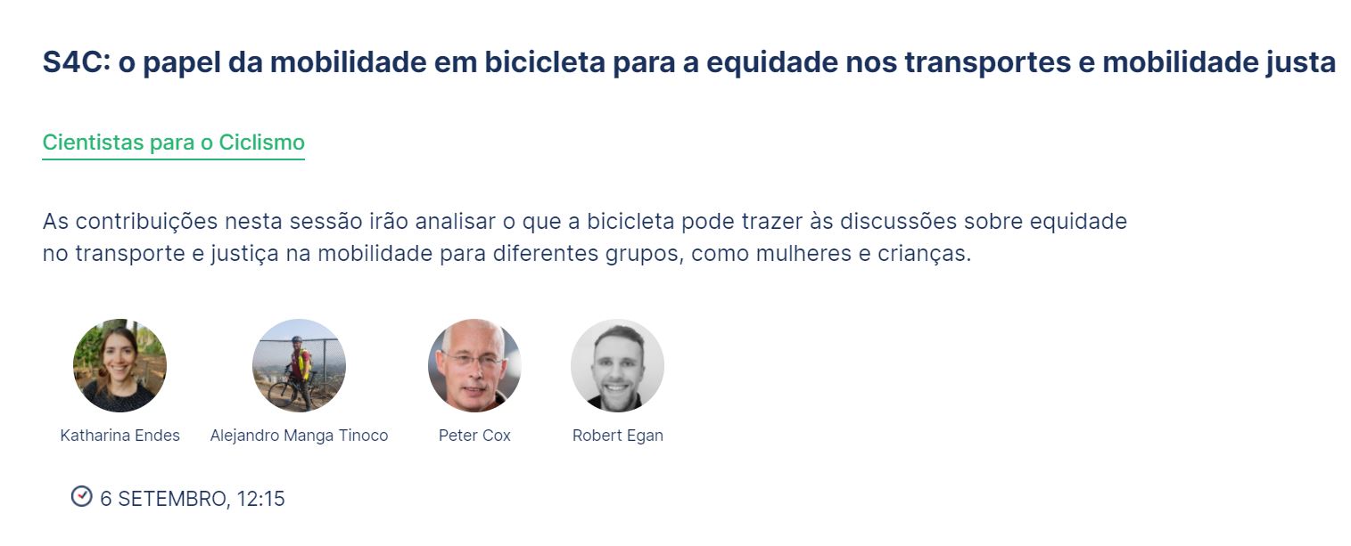 Subordinado ao tema “Cientistas para o ciclismo”, o evento Velo-city promoverá quatro momentos que, entre outros tópicos, abordarão o que pode a bicicleta trazer às discussões sonbre equidade no transporte e justiça na mobilidade para diferentes grupos, como mulheres e crianças.