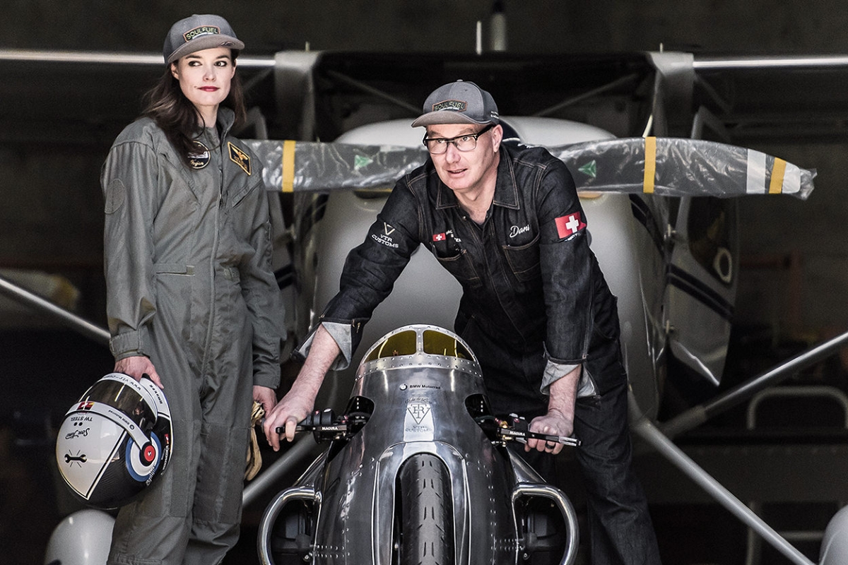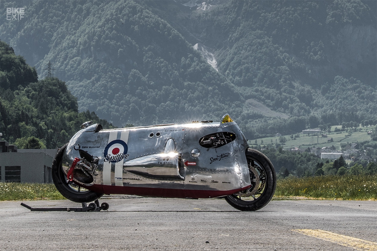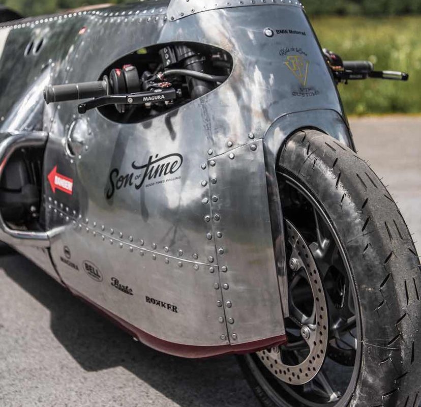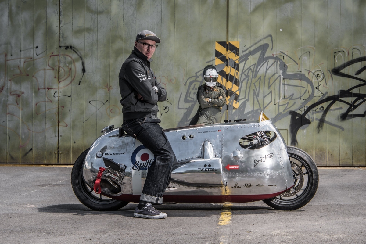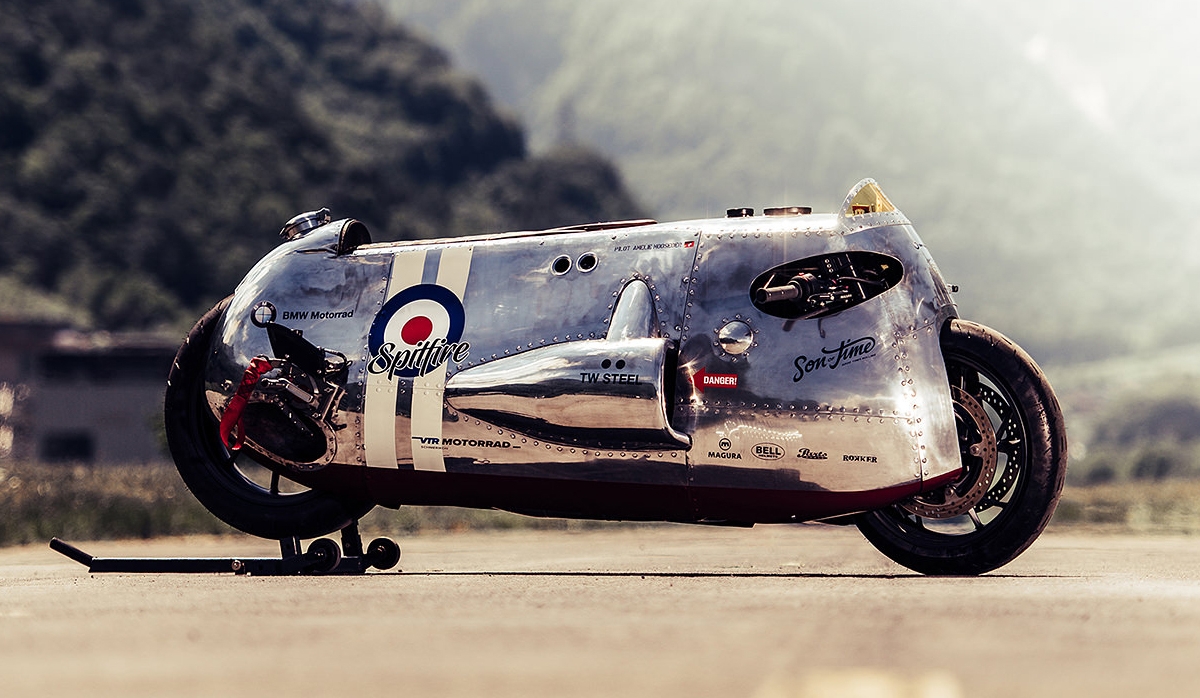 Dani Weidmann, responsável pela VTR Customs, empresa de Zurique, na Suíça, especializada no tuning de motos, é o grande mentor do projeto que levou à criação desta radical versão da BMW R1200 R, transformada num avião de combate das décadas de 30 e 40 do século passado. Weidmann, experiente no restauro de aeronaves, recorreu ao estúdio de design francês Barbara Design para colocar no papel a sua ideia de uma carenagem em alumínio cromado desenhada ao estilo aeronáutico, praticamente colada ao asfalto – o seu ponto mais alto está a 90 cm do solo.