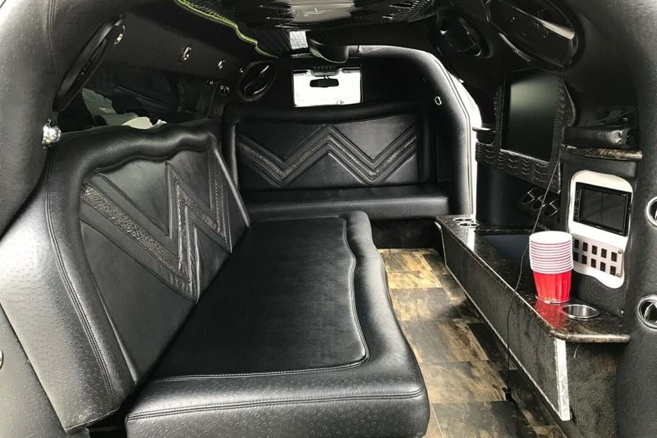 Para facilitar o acesso ao habitáculo ‘esticado’ foram instaladas portas de abertura asa de gaivota. No interior, todos os equipamentos habituais neste tipo de veículos de passeio, não faltando televisão e bar.