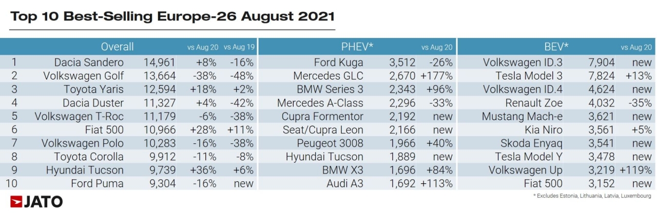 O segmento dos BEV e PHEV atingiu assim 21 por cento de cota de mercado, contra 20% por cento dos Diesel. Os veículos a gasolina representaram 56% das vendas de automóveis novos em agosto.