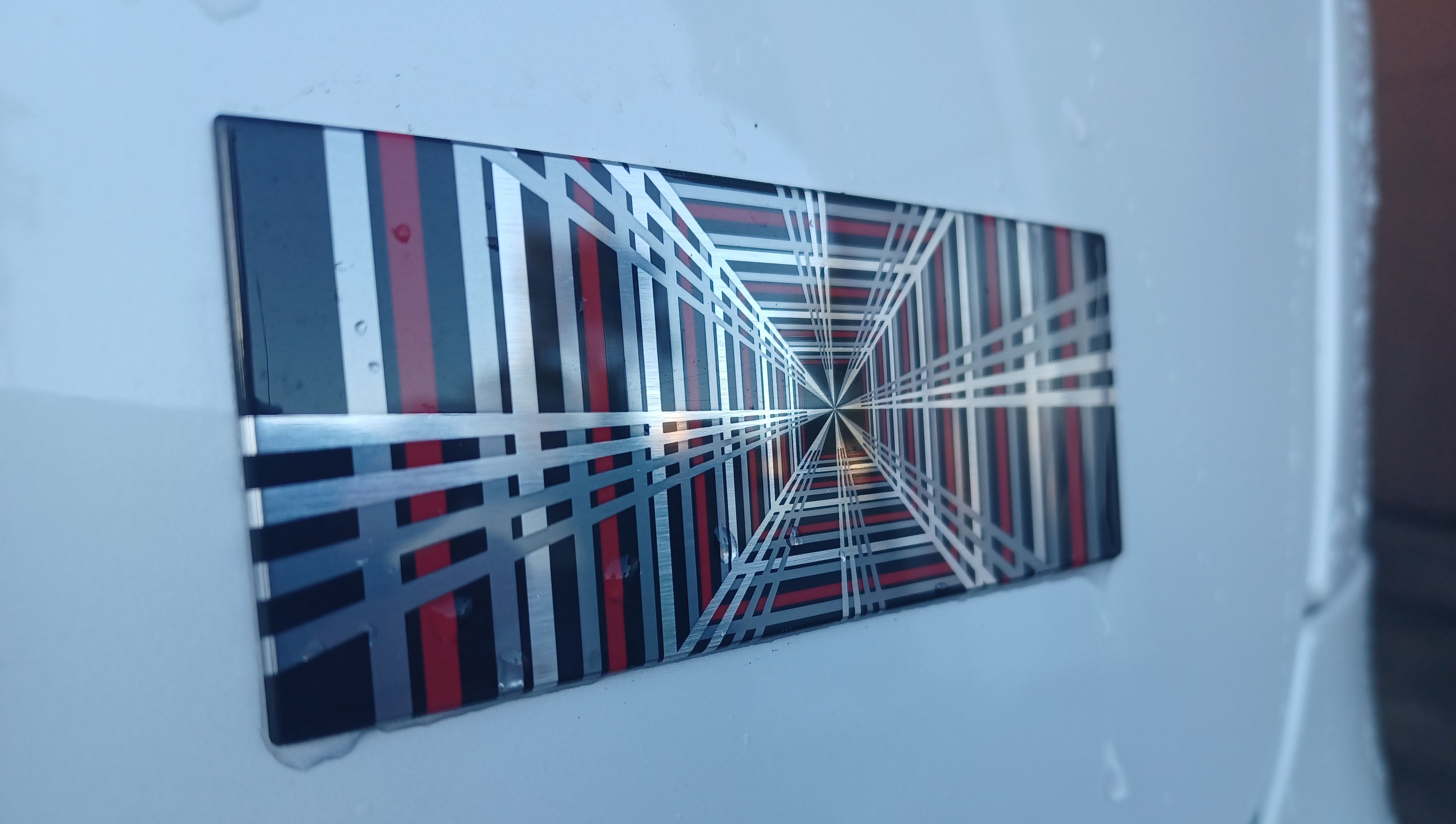 Para fãs da marca de Elon Musk, o emblema psicadélico na traseira do Model S não constituirá grande mistério, mas para quem só agora começa a familiarizar-se com os elétricos da Tesla, o símbolo diferente num modelo cujas opções de personalização são tão reduzidas (dois desenhos de jantes e cinco cores de carroçaria), é provável que se confunda com uma bandeira ou mesmo com o logótipo de uma empresa.