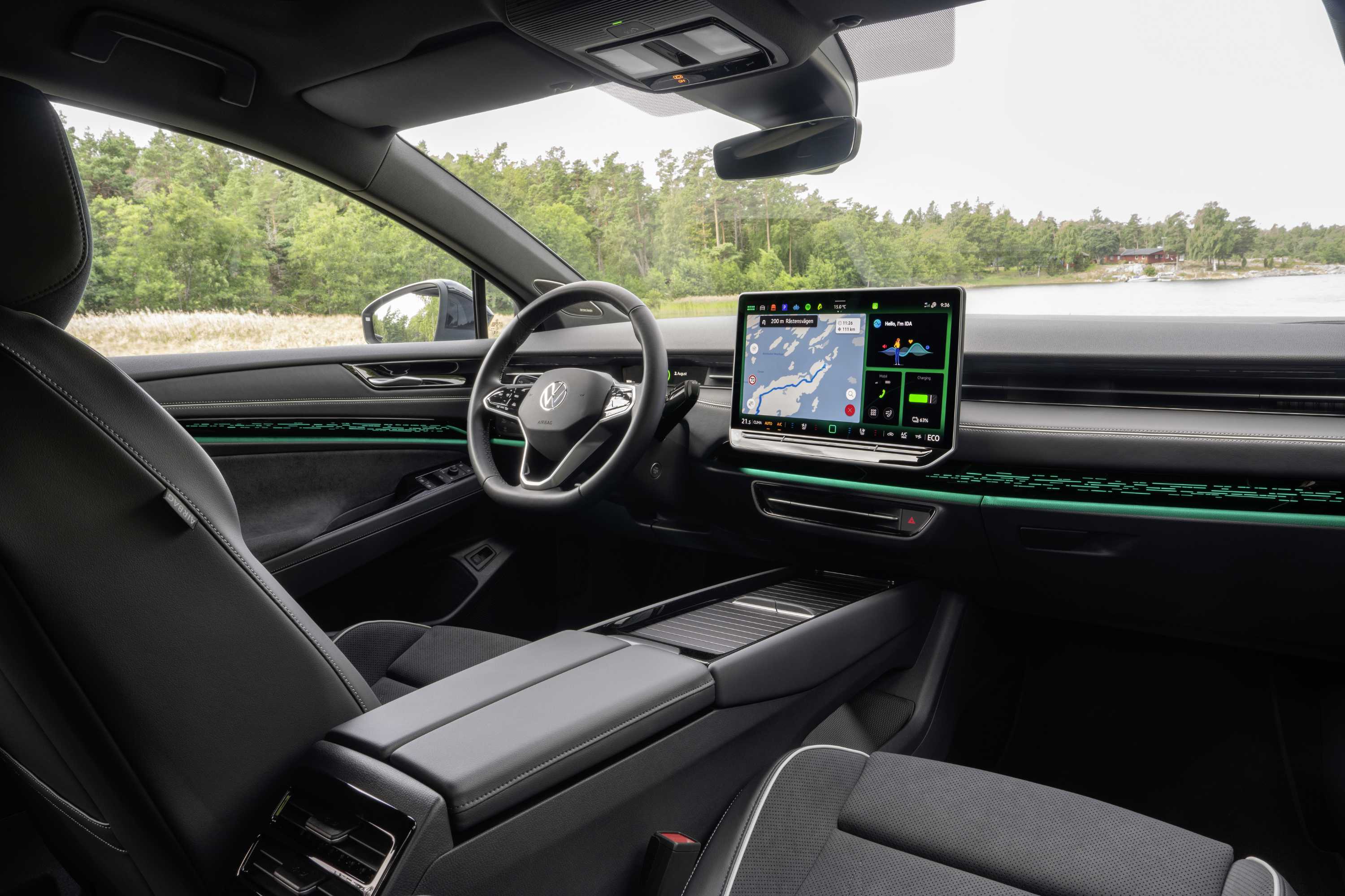 O sistema de infoentretenimento é o melhor que já testámos num Volkswagen elétrico, apesar de termos experienciado alguma dificuldade em encontrar de imediato o submenu para a climatização, é expedito na resposta, o ecrã de 15 polegadas tem uma barra de aplicações melhorada e os controlos táteis são retro iluminados. Além disso, passa também a contar com a integração do ChatGPT, que permite ao automóvel interagir com os passageiros, sendo capaz de responder a perguntas sobre diversos temas, de forma natural.