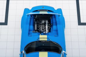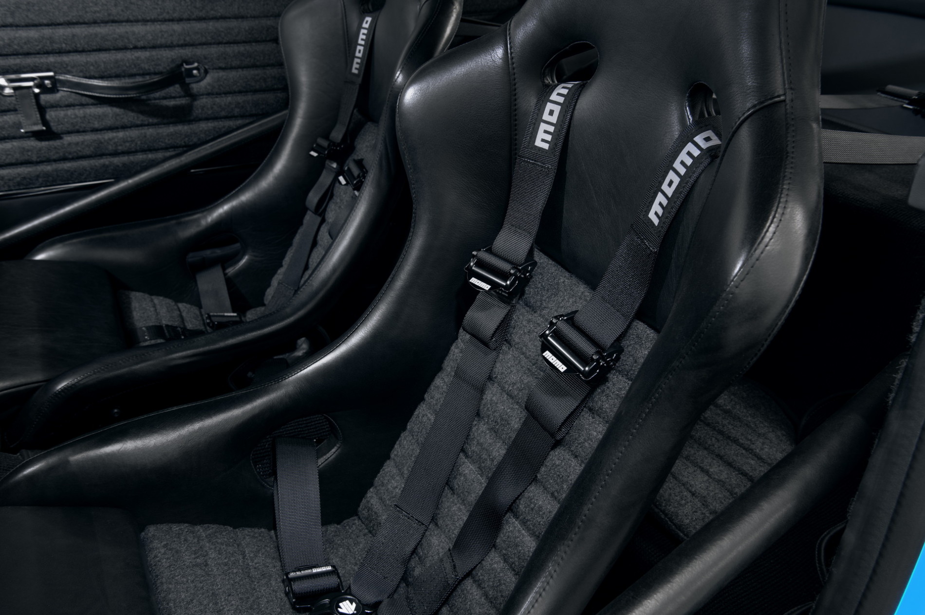 O resultado é este espetacular P1800 Cyan, que ‘copia’ todos os elementos essenciais do design arrebatador do original da década de 60, seja nas formas da carroçaria (com 4,2 metros de comprimento, 1,75 metros de largura e 1,22 metros em altura), seja no habitáculo, simples, quase minimalista, mas equipado com bancos desportivos com cintos de segurança de cinco pontos e ‘roll cage’ de titânio revestida a couro. O painel de bordo também utiliza aquele material nobre para cobrir a maioria dos painéis, enquanto o volante o Momo Prototipo e a instrumentação são de inspiração retro.