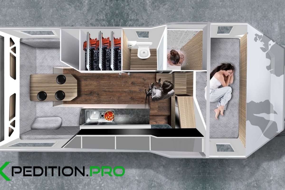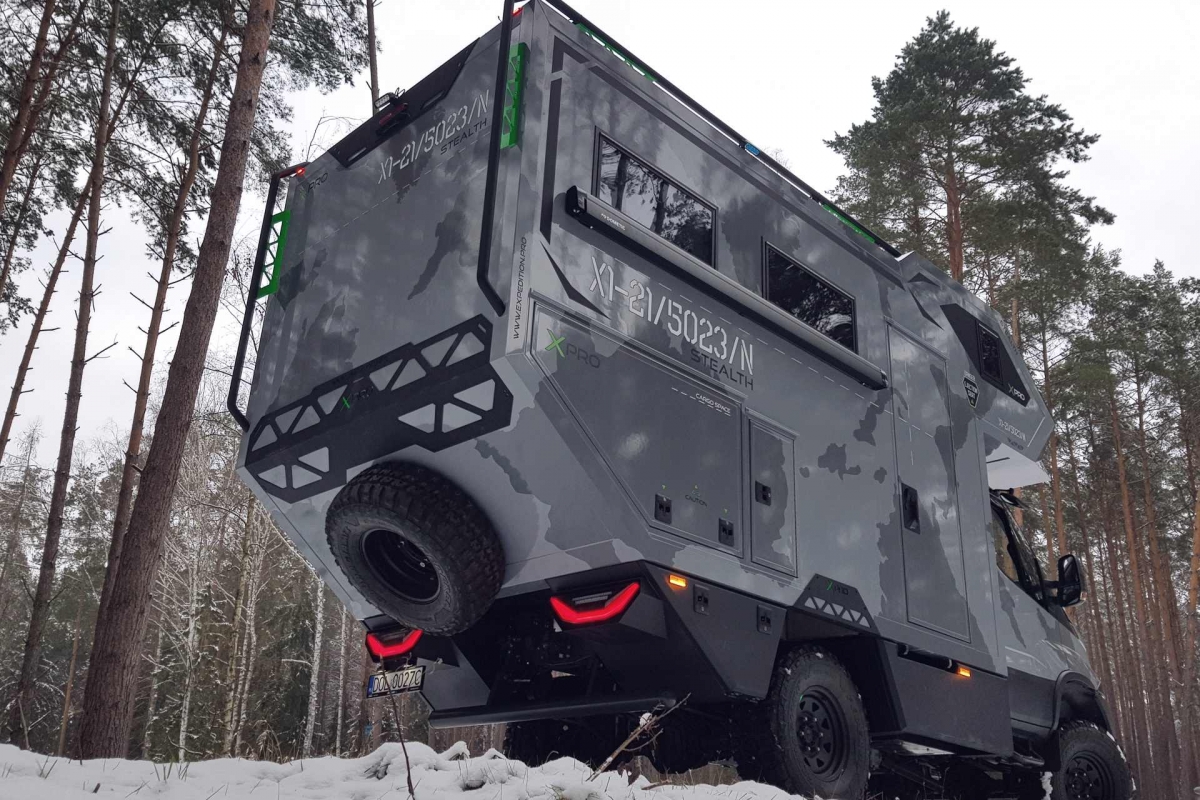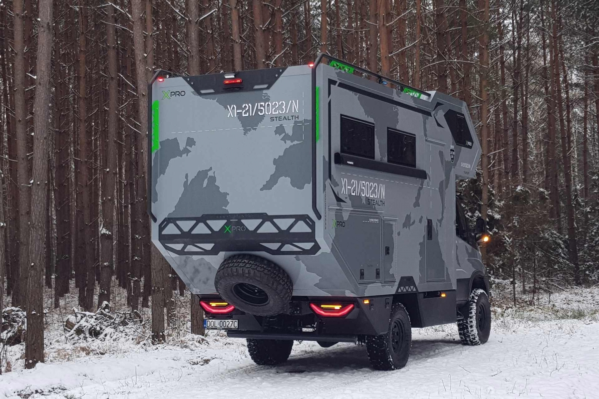 Os especialistas da Xpedition Pro inspiraram-se nos aviões de combate e em veículos militares para criar esta autocaravana.
