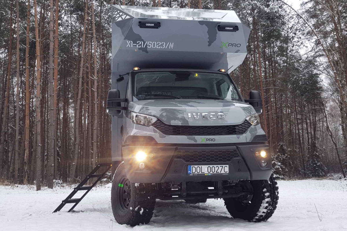 Desenvolvido com base no Iveco Daily 4×4, com camuflagem a decorar a carroçaria de formas futuristas e uma traseira cortada, com roda sobresselente integrada, que permite obter um ângulo de saída de 27 graus para aptidões excecionais na condução fora de estrada.