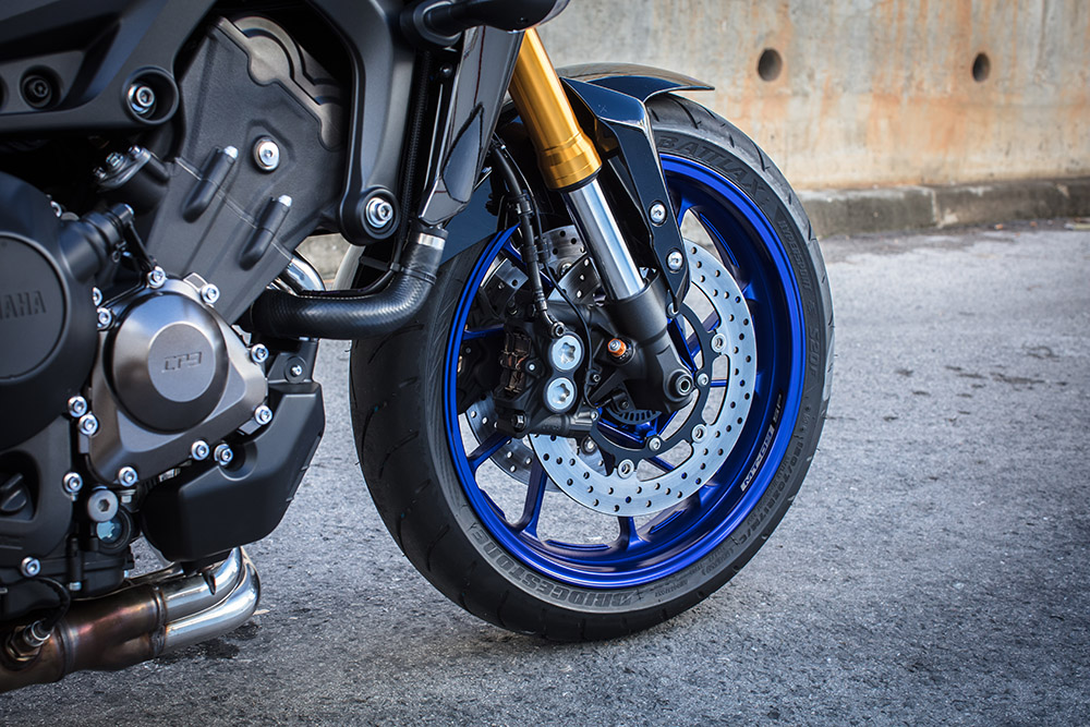 Já conhecíamos a MT-09 na versão normal. Então o que torna esta SP especial? A sua alma irreverente e divertida mantém-se inalterada, muito graças ao motor tricilíndrico com 847cc e 115cv.