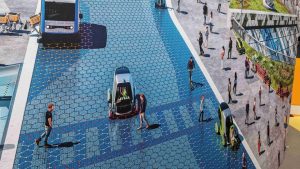 A empresa mostrou um sistema que tem já em teste nos EUA, onde coloca vários sensores, câmaras e radares, dos semáforos aos postos de iluminação que analisam tudo o que mexe na estrada e no passeio e comunicam com os veículos em tempo real para os avisar de algo que possam não estar a ver. O sistema Vehicle to Grid (V2G) informa o veículo, por exemplo, de um peão que avançou para a estrada quando estava vermelho, permitindo que o condutor ou o sistema autónomo do carro reduza ou pare o veículo e evite o atropelamento.