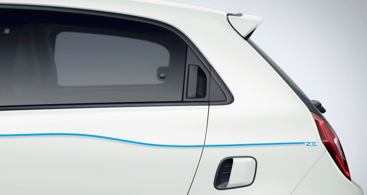 O primeiro ponto que importa clarificar é que o Twingo abandona a designação oficial Z.E. presente nos outros Renault elétricos: o seu nome é apenas Twingo Electric, mesmo se as letras ZE continuam a aparecer na sua decoração, enriquecida com diversos apontamentos estéticos específicos.