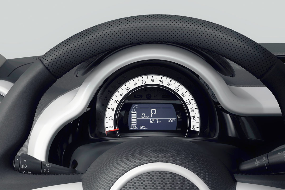 A versão elétrica mantém todas essas qualidades, acrescidas de uma motorização zero emissões locais, quase sem ruído e de facilidade de condução majorada. A capacidade de quase rodar sobre si mesmo em cima de uma moeda de euro é surpreendente, fruto do conceito “tudo-atrás” (motor e tração) desta plataforma.