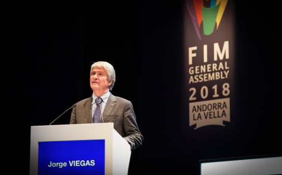 Natural de Faro, com um mestrado em Economia (Relações Internacionais) Jorge Viegas iniciou a sua relação com as duas todas quando foi piloto de motocross em 1974, antes de trocar de especialidade e se tornar piloto de velocidade, competindo em alguns GP’s de 250cc e nas 24 Horas de Le Mans. Depois de alguns anos como jornalista foi um dos fundadores da FNM/FMP e o seu primeiro presidente em 1990, tendo sido igualmente presidente do Circuito do Estoril depois de nomeado pelo governo de Portugal para desempenhar o cargo. Jorge Viegas sucede ao venezuelano Vito Ippolito para ser o 13º presidente da instituição máxima do motociclismo mundial.