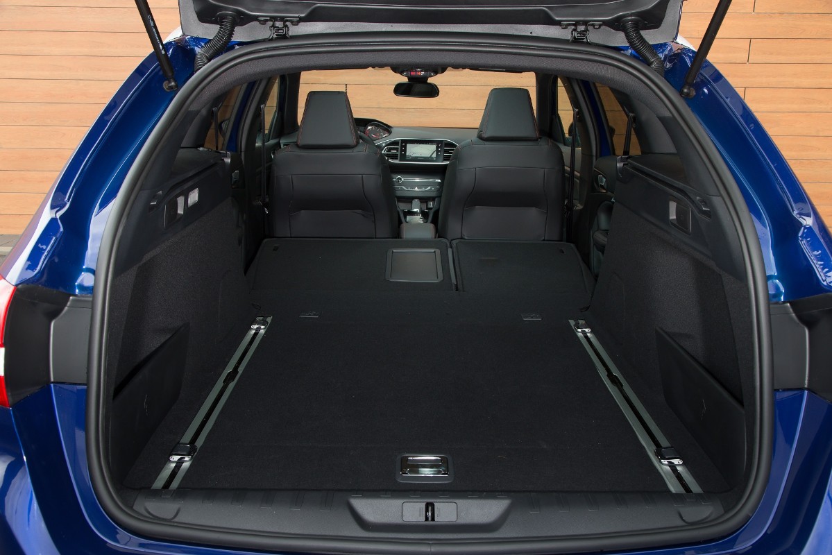 Mas, o que se ganha, por um lado, perde-se pelo outro, e o volante de dimensões reduzidas (mas com fundo plano, desportivo) e sobretudo com a coluna de direção “atrofiada” que não o deixa subir até à altura ideal para o condutor de estatura média (tapando a visibilidade da maior parte dos instrumentos do painel de bordo, devido ao aro superior do volante) é uma mancha difícil de disfarçar e que nada joga a favor do conforto para quem guia, até porque não ajuda a encontrar a posição ideal de condução. Sendo preciso esperar pela próxima geração do 308 para a correção deste erro técnico, vale mais concentrar nos aspetos positivos do interior, que têm no espaço revelado um bom trunfo. Fazendo jus à sua vertente familiar, este 308 SW oferece boas cotas de habitabilidade, tanto à frente, como atrás, ao nível dos ombros, pernas e joelhos, podendo ainda dar-se ao luxo de apresentar uma das melhores bagageiras da classe, com 610 litros (valor que sobe para 1660 litros com o rebatimento dos bancos traseiros, através de práticas patilhas lateral) e verdadeiramente funcional, uma vez que vem munida com calhas laterais. Sem acionamento elétrico, o portão traseiro revela-se, contudo, algo pesado, ainda que não seja, naturalmente, preciso umas sessões de ginásio para fechá-lo.