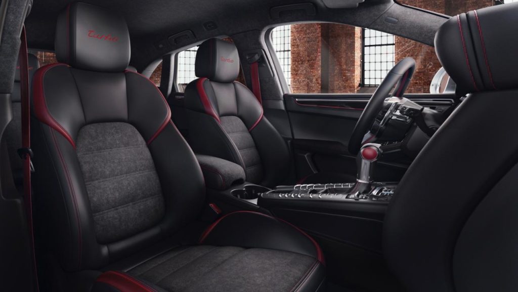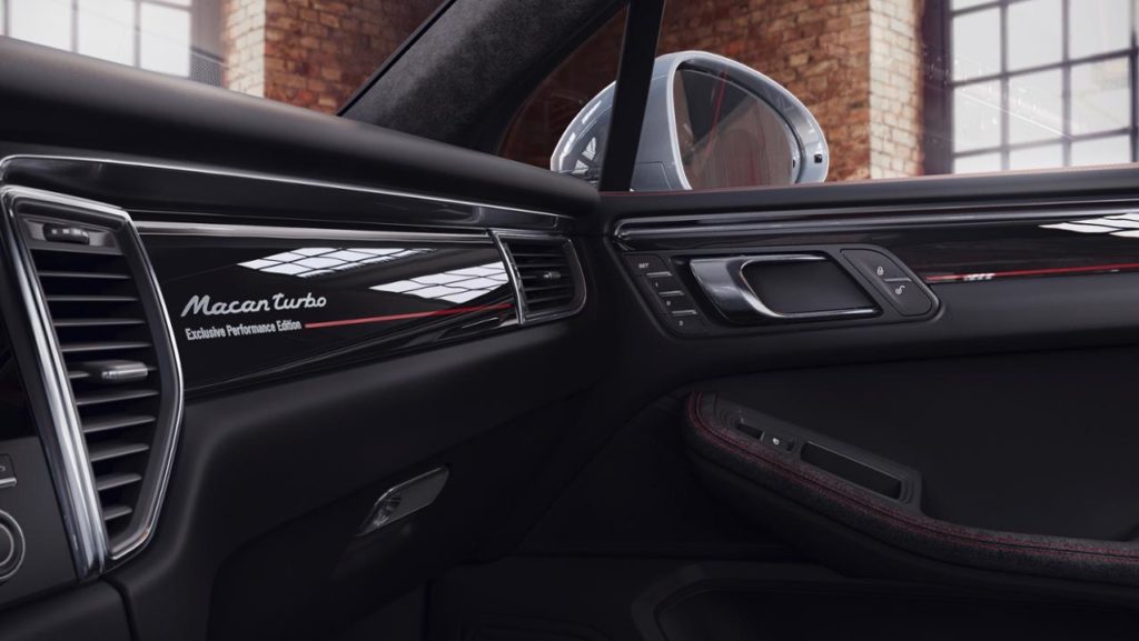 O interior é caracterizado por revestimentos pretos de couro e alcantara e elementos contrastantes em encarnado. Na base das portas encontra-se a designação “Macan Turbo Exclusive Performance Edition”. Os bancos (dianteiros e traseiros) e o volante são aquecidos de série.