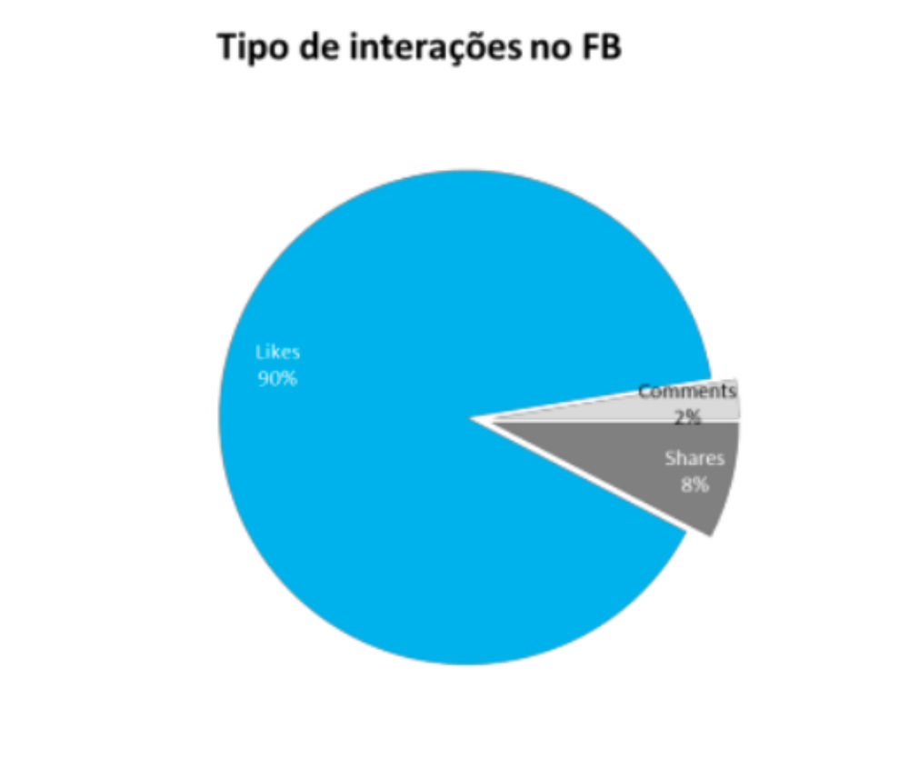 O exemplo do FacebookO gigante Facebook é um caso interessante, percebendo-se claramente qual a atividade mais comum dos seus utilizadores nacionais, conforme revela o Grupo Marktest: “As páginas portuguesas no Facebook das marcas monitorizadas pelo serviço Social Media Explorer registaram um total superior a 38 milhões de interações durante o ano em análise. A grande maioria destas interações, 90%, são ‘Likes’ a ‘posts’ publicados na página da marca, 7.7% das interações são partilhas realizadas pelos internautas e apenas 2.5% comentários publicados nestas páginas.”