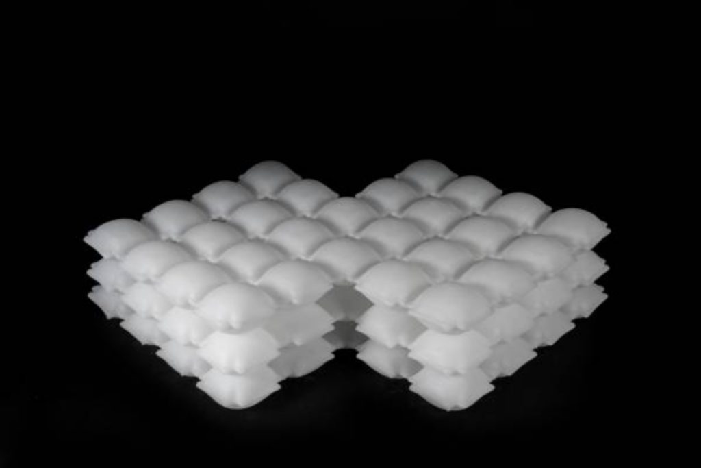 Esta novidade resulta de um projeto iniciado em 2016, precisamente com vista a desenvolver novos materiais, pois o objetivo final passa por desenhar superfícies futuras que sejam interativas e se adaptem uniformemente. Este primeiro material impresso insuflável foi criado a partir de silicone, e consegue mudar o seu aspeto consoante a pressão de ar injetada no interior. Dessa forma, o “controlo pneumático do sistema permite à estrutura transformar-se numa variedade de formas, funções e rigidez”.