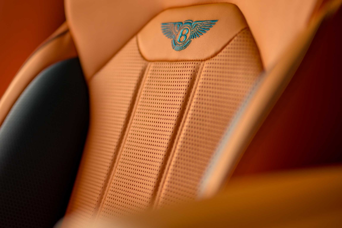 O acabamento Onyx escolhido para o capô, o tejadilho e a parte superior da carroçaria está perfeitamente integrado com a grelha em preto brilhante, as entradas de ar dianteiras, as aberturas das asas, as linhas laterais da carroçaria e o difusor traseiro da especificação Blackline. Contrasta de forma dramática com o acabamento em azul Kingfisher, enquanto o tejadilho e o habitáculo escuros criam uma impressão visual mais baixa e desportiva. A divisão de cores repete-se nas jantes de 22″ de dez raios com um acabamento pintado em Kingfisher e Beluga. Os emblemas fixos nas jantes Bentley dão o toque final ao exterior.