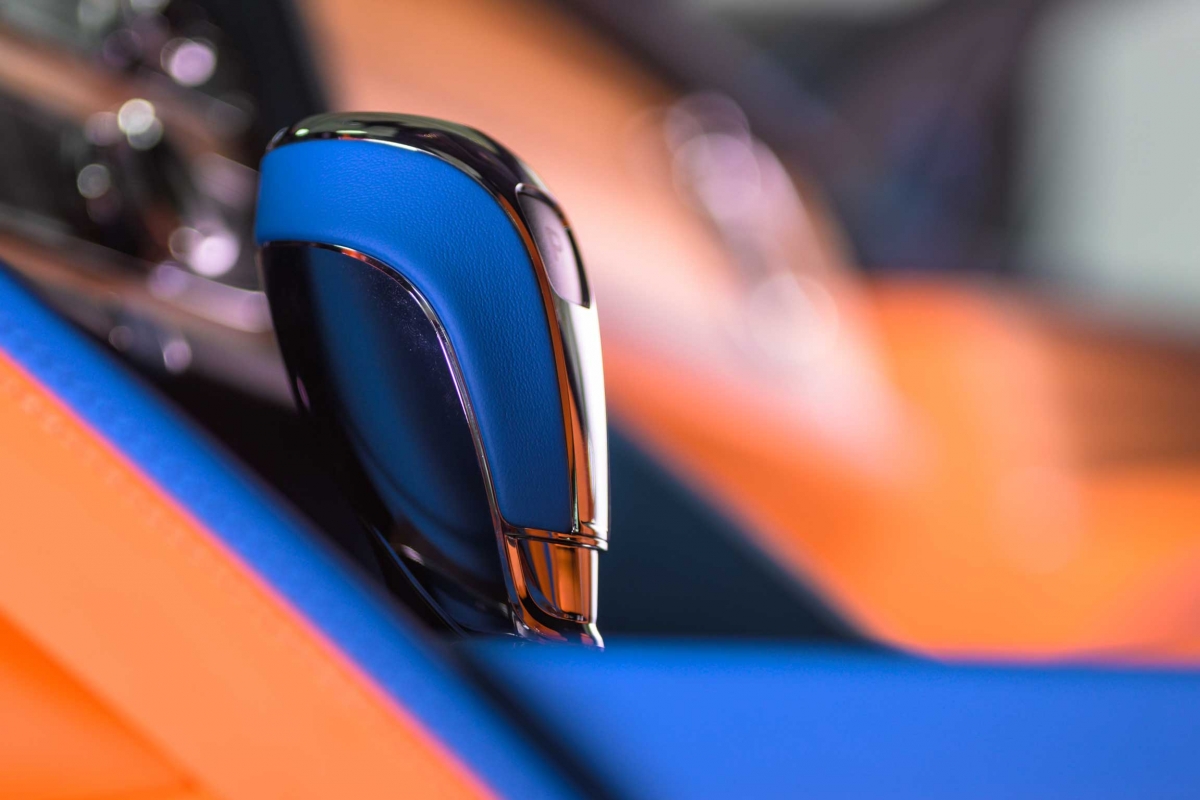 Um cofre da Mulliner proporciona segurança para joias e objetos de valor e é fornecida numa combinação de pele Imperial Blue e Mandarin, com Alcantara Imperial Blue para as superfícies interiores. Os logos nos bancos são bordados em Kingfisher, sendo a mesma cor utilizada na costura de contraste em todo o habitáculo. Até mesmo os tapetes em Azul Imperial apresentam um micro revestimento em Kingfisher com costuras em Mandarim e revestimento exterior. As placas nas soleiras das portas são gravadas com a mensagem “One of One” personalizada para o cliente.