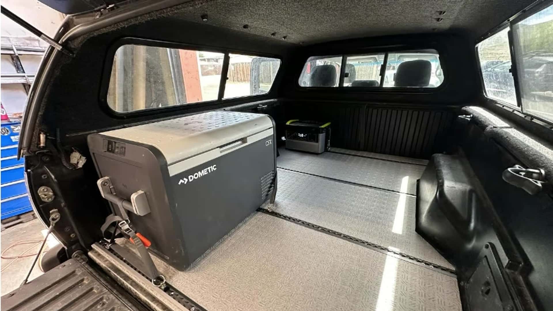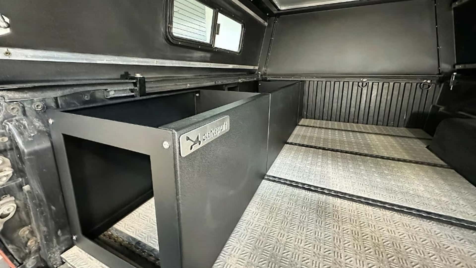 As imagens fornecidas pelo fabricante mostram um refrigerador deslizante na porta da bagageira, uma caixa de arrumação em alumínio por cima da roda do lado do condutor e um lava-loiça em alumínio por cima da roda do lado do passageiro.