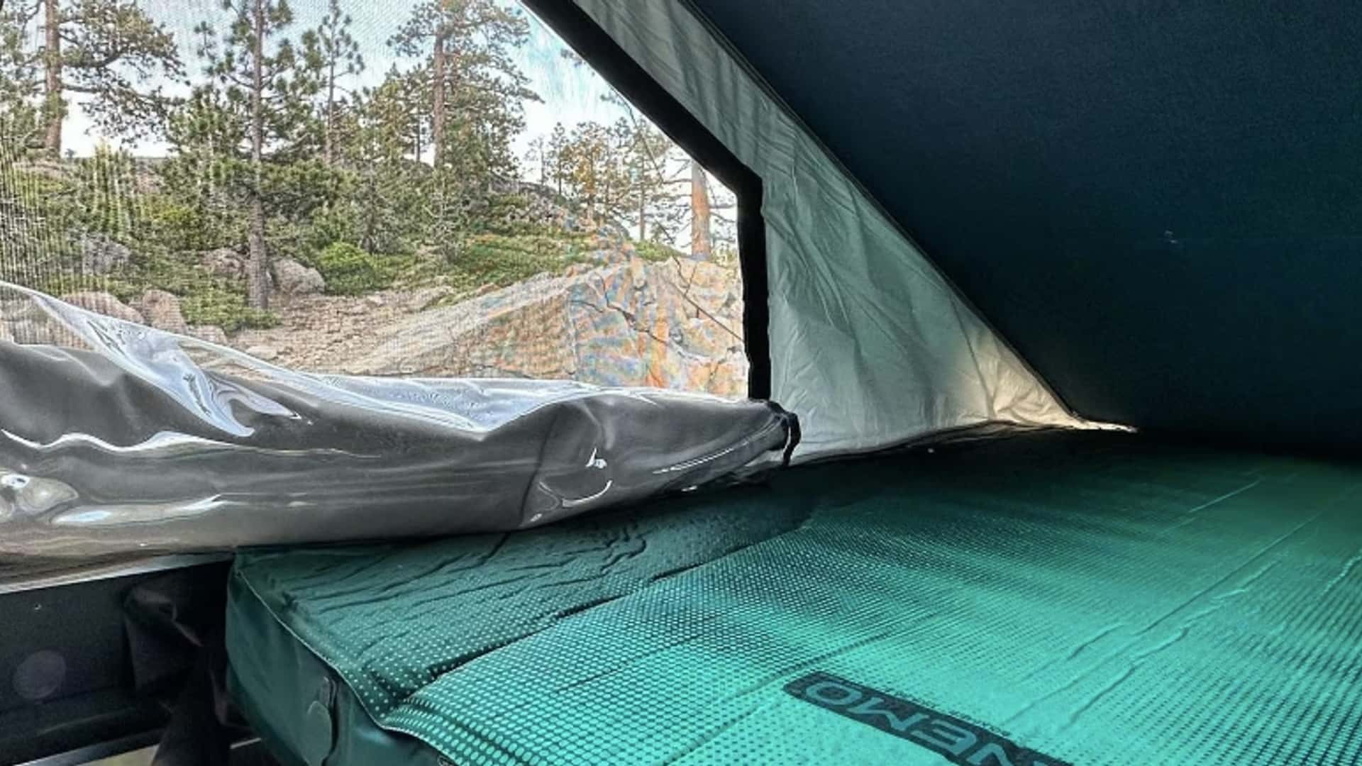 O design foi concebido para as quatro estações do ano, com isolamento em lã Havelock e paredes laterais em tecido isolado, janelas Tern Overland opcionais, um colchão insuflável Nemo Roamer de 132 x 198 x 10 cm e duas calhas em “L” para montagem de acessórios.