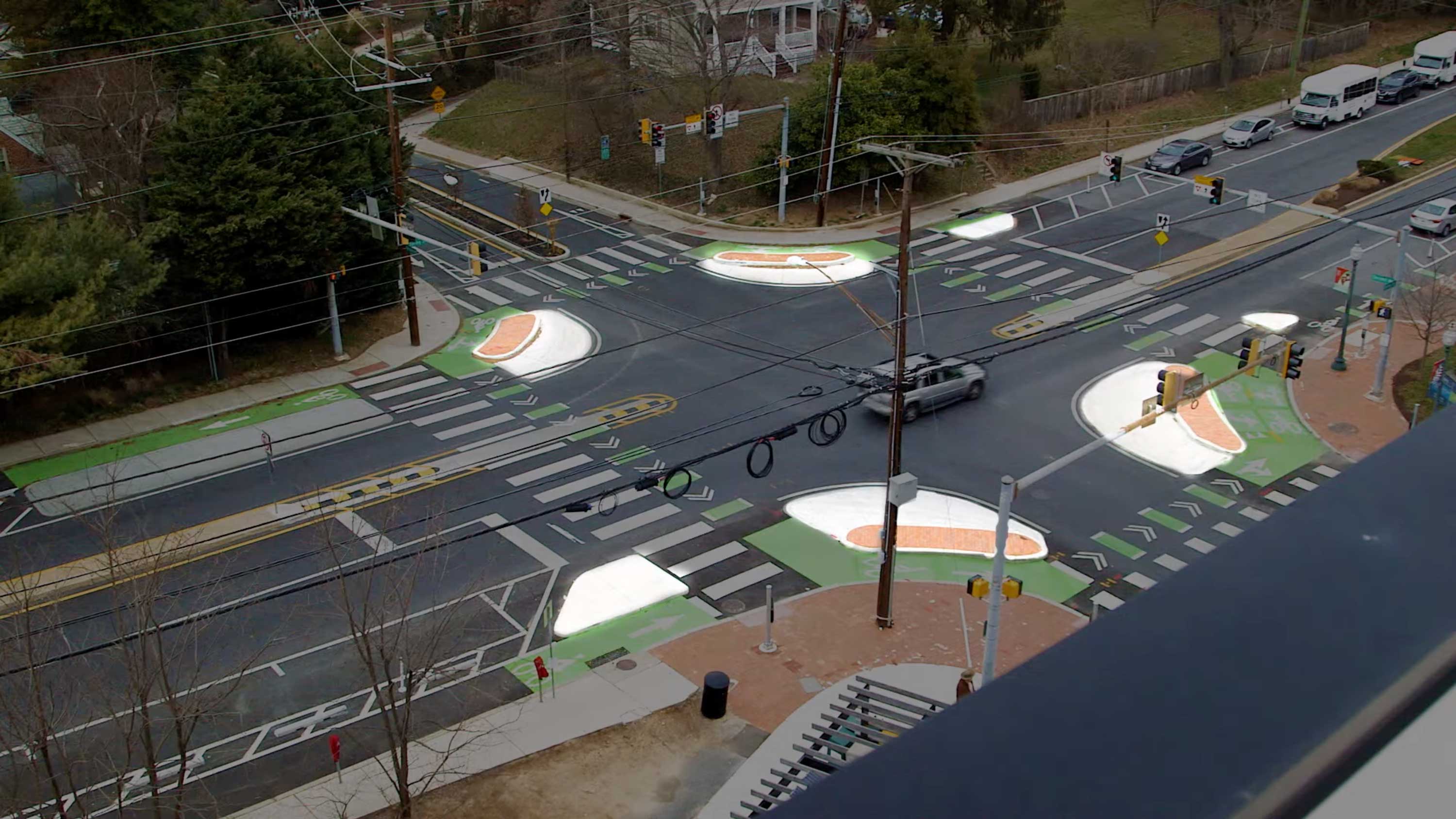 O traçado também inclui uma espécie de ilhas nas esquinas, obrigando os condutores a abrandar. Este elemento de conceção de infra-estruturas há muito que é popular em todo o mundo, mas nos últimos anos começou a ser mais visto nos Estados Unidos.