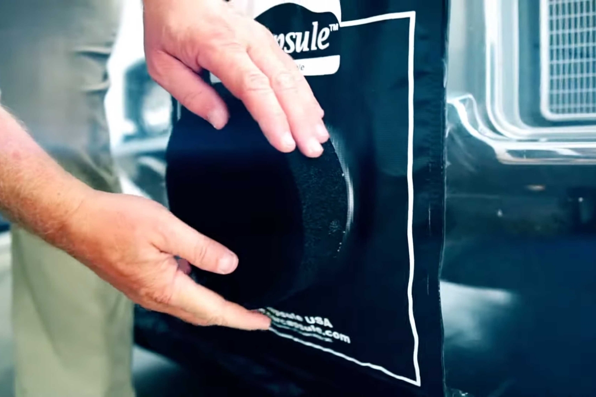 O sistema originalmente consiste num tapete de base, sobre o qual deve parar o carro, e uma enorme capa em PVC, que cobre todo o veículo e fica presa ao tapete com fecho muito resistente. Em seguida, aciona-se o compressor elétrico embutido para insuflar toda a estrutura. Existe um filtro, através do qual o sistema renova o ar entre “três a quatro vezes por hora”, descreve a empresa, “eliminando a condensação e mantendo o veículo completamente seco, independentemente da temperatura exterior ou do nível de humidade”.
