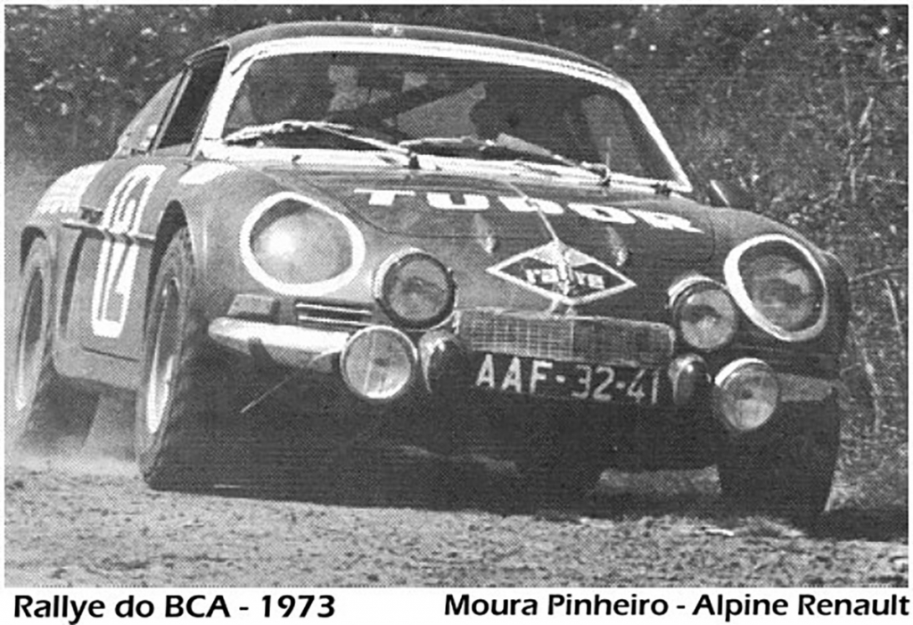 Carlos Moura Pinheiro com José Manuel Dinis como navegador no Alpine-Renault 1600s Gr2 alinharam no prestigiado Rallye BCA (Banco Comercial de Angola) no ano em que o Alpine 1800 Gr4 se sagrou Campeão do Mundo de Ralis, 1973”.