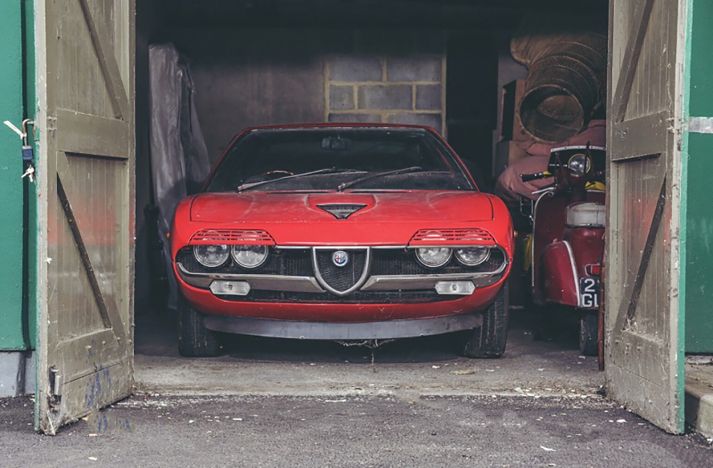 Este Alfa Romeo Montreal de 1975 passou mais de 20 anos fechado numa garagem, até que o actual proprietário o adquirir em 2008 para fazer o restauro com a sua mulher. Infelizmente, ela acabaria por falecer num acidente e o projecto nunca foi concluído devido à falta de motivação.