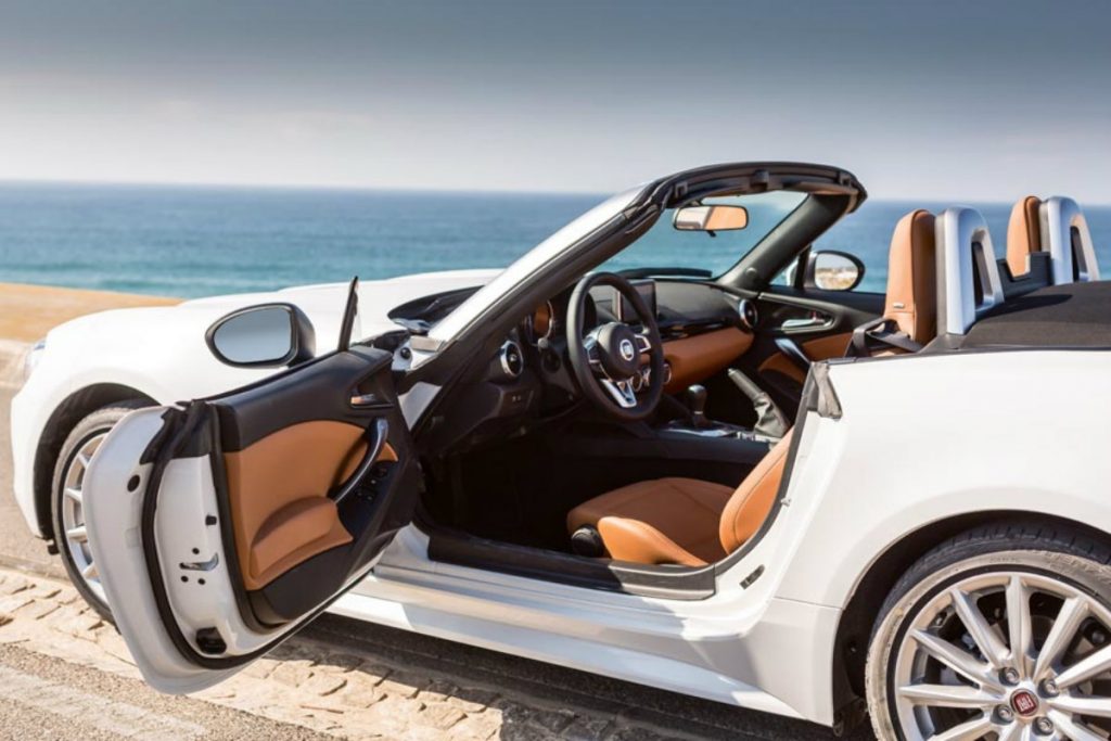 No regresso aos roadsters, que chegou a ser equacionado para a Alfa Romeo, a Fiat associou-se aos especialistas da Mazda, partilhando toda a mecânica, com exceção dos motores, com o icónico MX-5. Uma partilha extensível ao interior, onde as diferenças são feitas pelos logótipos. A mesma posição de condução encaixada, volante com regulação apenas em altura, túnel central elevado, seletor da caixa onde a mão instintivamente o procura, porta-luvas atrás dos bancos e capota têxtil de acionamento manual.