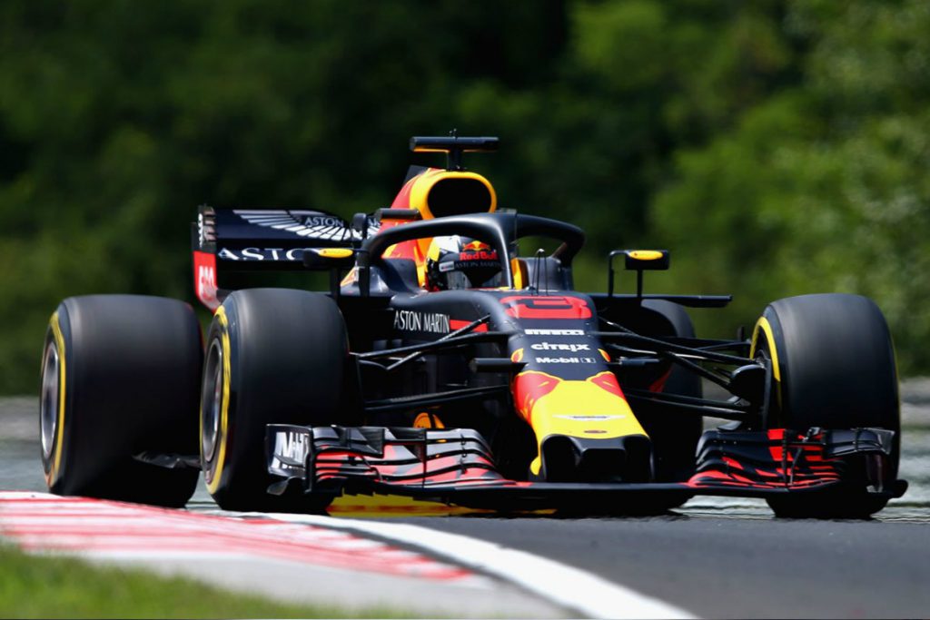 Daniel Ricciardo foi o mais rápido na primeira sessão de treinos livres do Grande Prémio da Hungria. O piloto da Red Bull bateu Sebastian Vettel por 0.079s e o seu colega de equipa, Max Verstappen, por 0.088s. Os dois Red Bull fizeram o seu tempo mais rápido com os pneus macios, enquanto Vettel fez o seu melhor tempo com os ultramacios.