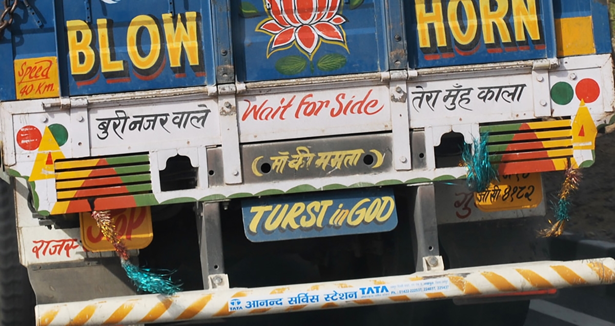 Os camiões indianos são assim autênticos outdoors ambulantes, viajando de uma ponta até à outra do país, levando consigo arte e mensagens.