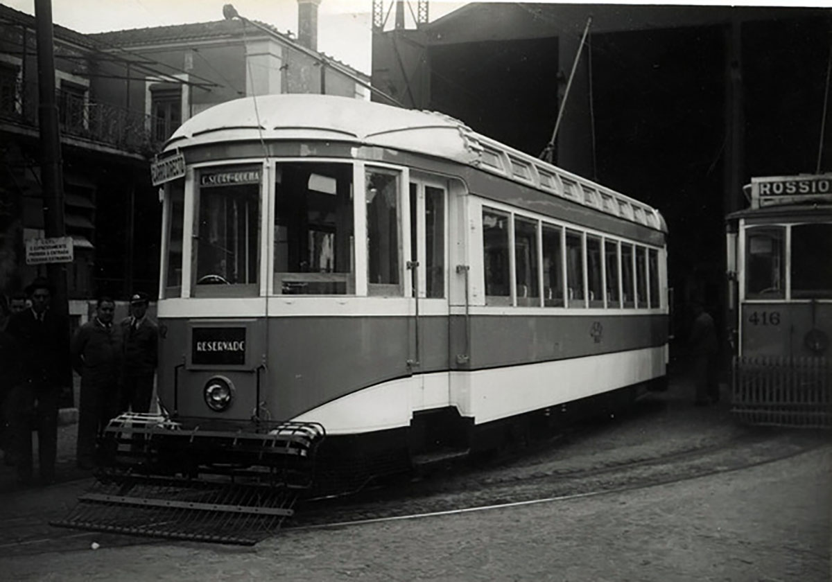 Novos eléctricos da Carris O modelo número 802, com linhas mais modernas e aerodinâmicas foi construído nas oficinas da Carris. (Cais do Sodré - Rocha, Rossio, Carro Directo)
