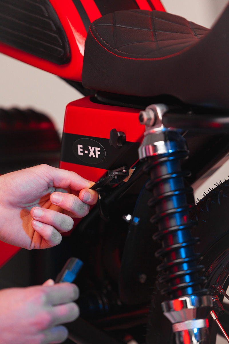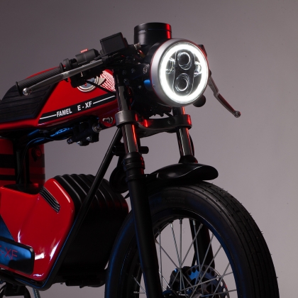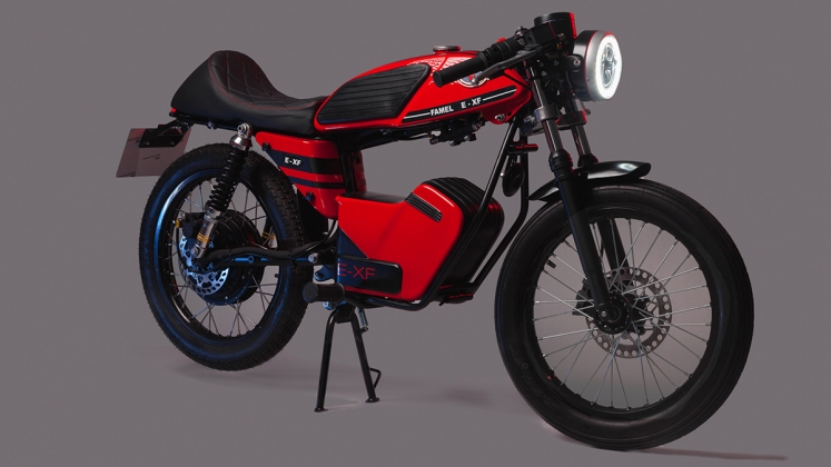 A Famel regressa ao final da década de 70 onde foi concebida inicialmente a XF-17; o seu design esguio, mas aspeto e performances desportivas fizeram com que fosse um dos modelos mais cobiçados e coroaram-na como a rainha das motorizadas portuguesas. Invocando toda a herança deste modelo icónico, a nova E-XF promete trazer a Famel de volta às estradas com um design clássico, mas eletrificado, utilizando um motor à roda com potência máxima de 5kW, e velocidade máxima de 70km/h (limite legal de 45km/h) que prometem trazer alguma diversão às deslocações diárias. “A ideia de eletrificar surgiu durante o restauro de uma XF-17 antiga que possuo; hoje em dia ainda se comercializam peças novas para restaurar o que permite uma partilha de componentes significativa” explica Joel Sousa.